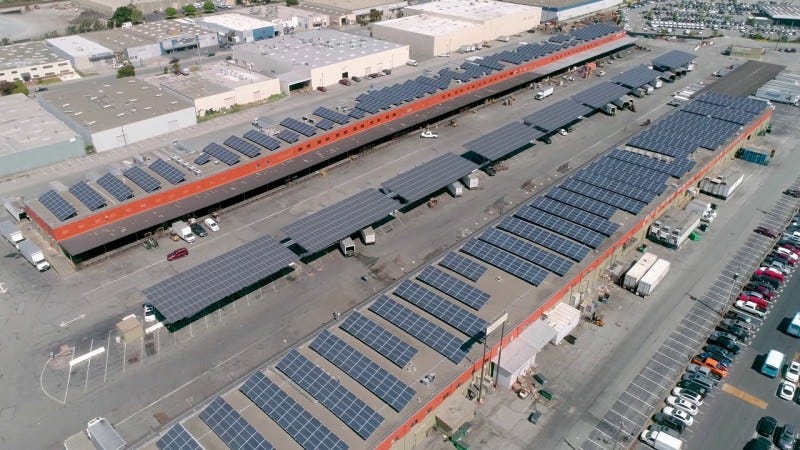 And then this week I noticed that the roof of the wholesale produce market in San Francisco was covered in solar panels.