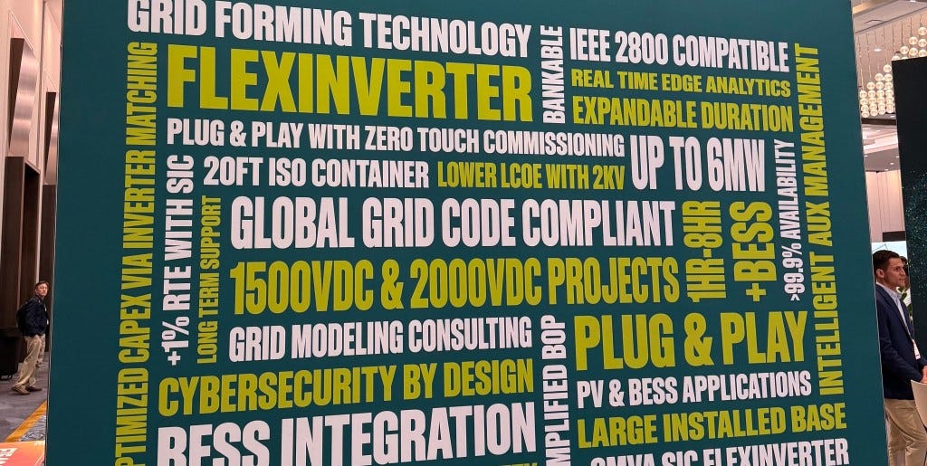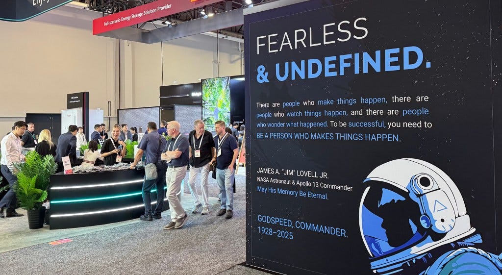 If solar panels are the face of clean cheap power, battery storage is increasingly the heart, the brains, and the courage (forgive the analogy... The Wizard of Oz is at the Sphere, and the advertising is everywhere in Vegas). A huge chunk of the conference was focused on the booming market for battery technologies, from giant grid-scale batteries to small portable power packs.