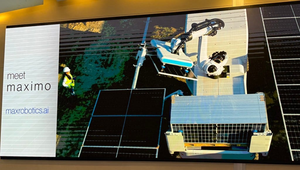 To plug the workforce shortage, there were plenty of robots on display at the show, designed to do everything from install solar panels in the desert to keeping them clean afterward. And there was plenty of talk about AI to help the robots. I have no idea how much of this automation is actually working, but it's clearly attracting lots of investment.
